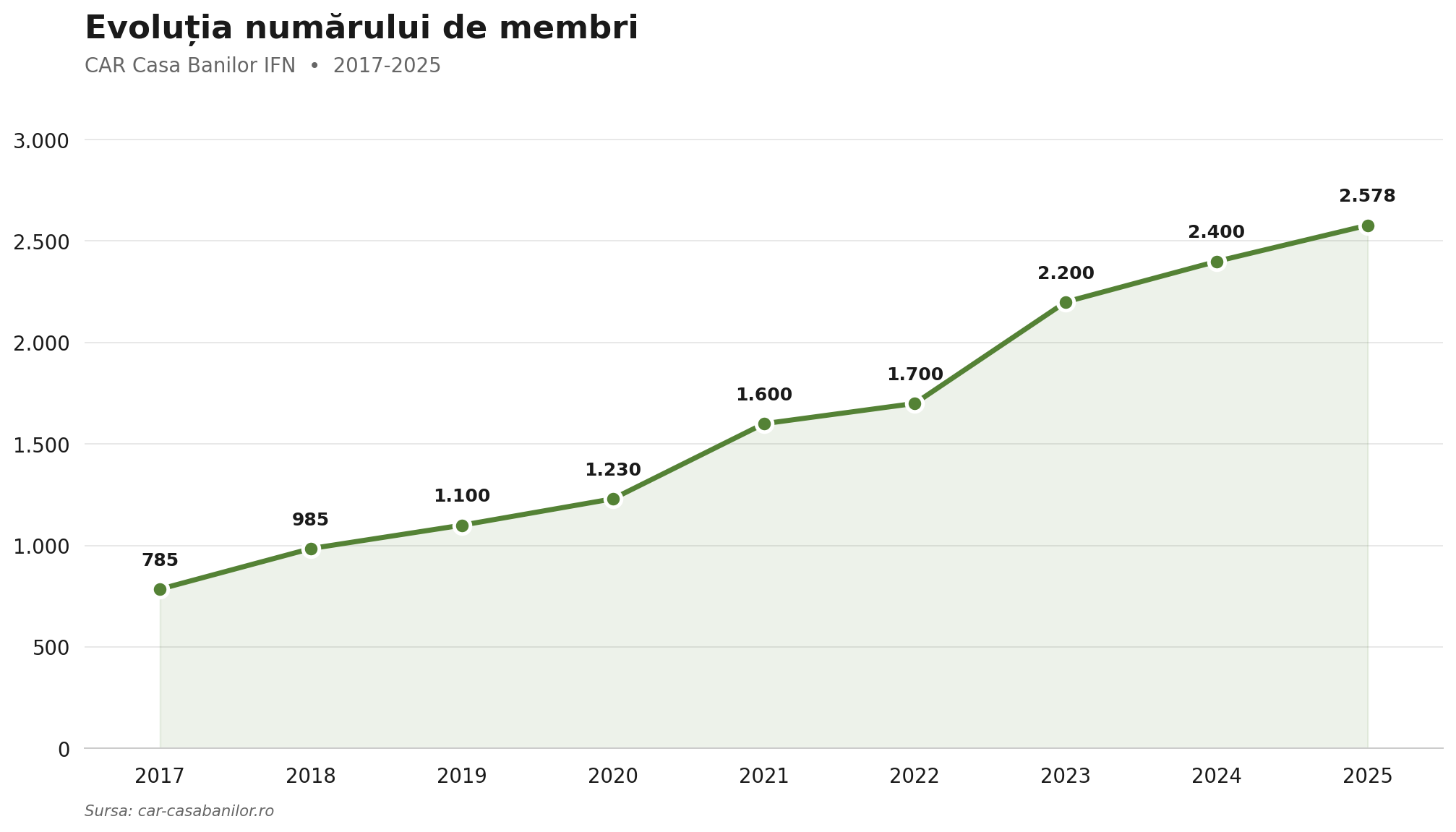 Creșterea numărului de membri a încetinit în 2024 la 9,1%, după doi ani consecutivi cu rate de peste 29%. Este un semn firesc de maturizare a instituției, dar și o invitație la atenție: trebuie să continuăm să ne facem cunoscuți și să oferim servicii care să justifice încrederea celor care ni se alătură.